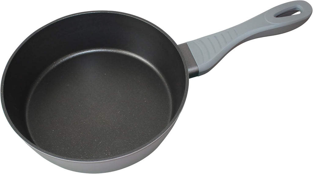 Ergonomic soft touch handle: comfortable grey handle with aluminium flame protection for safe and comfortable handling