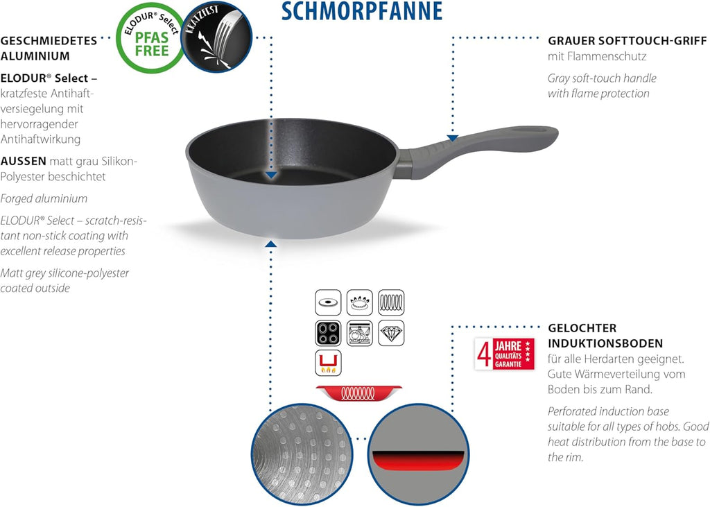 Anti-scratch non-stick coating: interior with PFAS-free ELODUR Select non-stick coating for grease-free cooking without glue