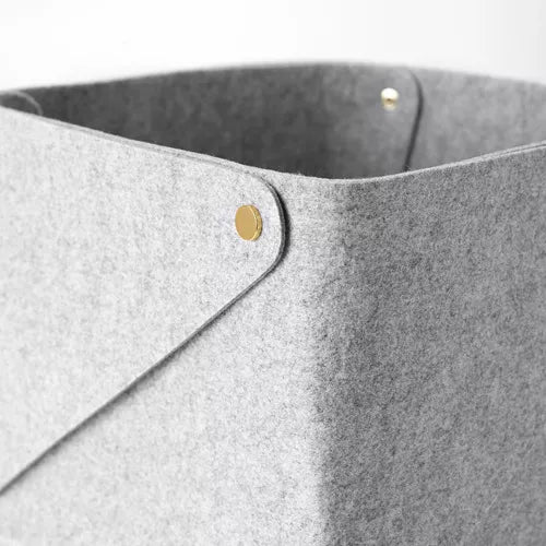 Details like the soft felt fabric and shiny brass button add style to any storage. This basket is available in two sizes for your different types of accessories, and it looks great with EKET storage.